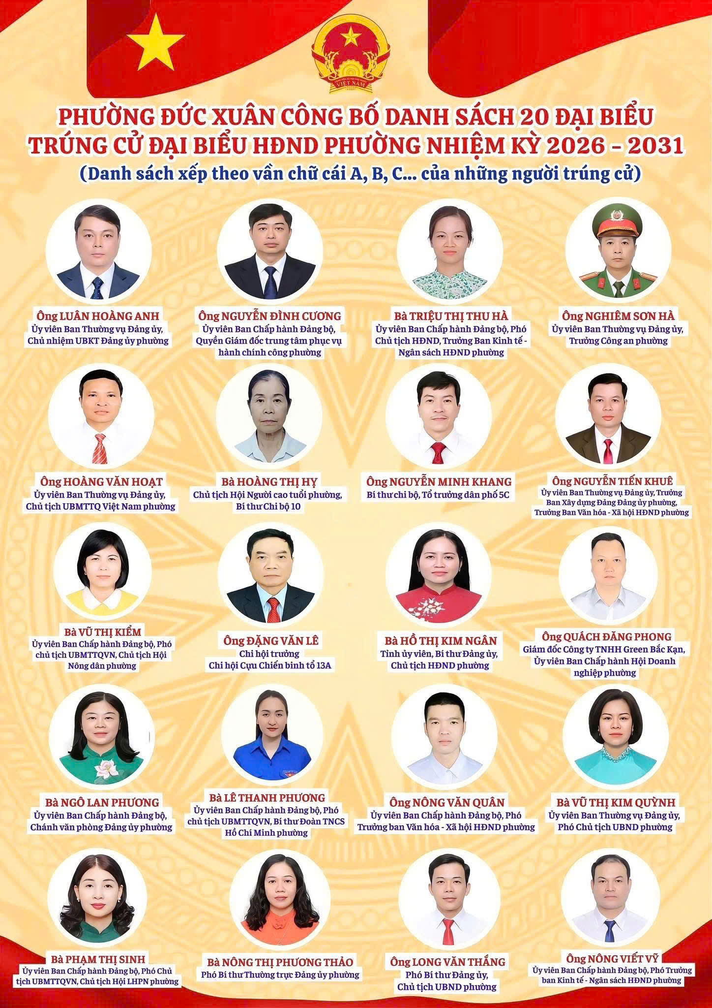 Ủy ban Bầu cử phường Đức Xuân ban hành Nghị quyết số 66/ NQ-UBBC ngày 18/3/2026 về việc công bố kết quả bầu cử và danh sách những người trúng cử đại biểu Hội đồng nhân dân phường Đức Xuân khóa VIII, nhiệm kỳ 2026 - 2031.